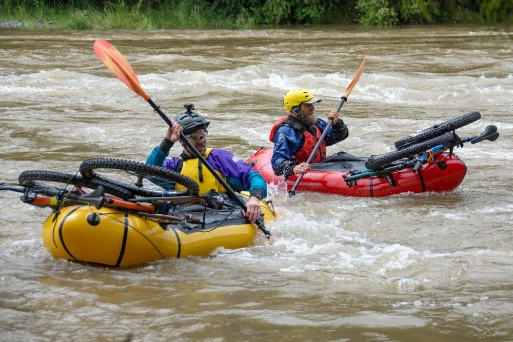 All members competently ferry gliding, catching eddies and running Rapids. The boats are just like you'd expect fast light and as manoeuvreble as a kayak but with the stability of a little raft. On Sunday the rivers were in flood but we had a workshop loading boats, paddles and PFD's on bikes. Then a flat water session with bikes on boats.